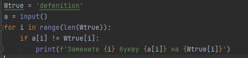 print(f'Замените {i} букву {a[i]} на {Wtrue[i]}')