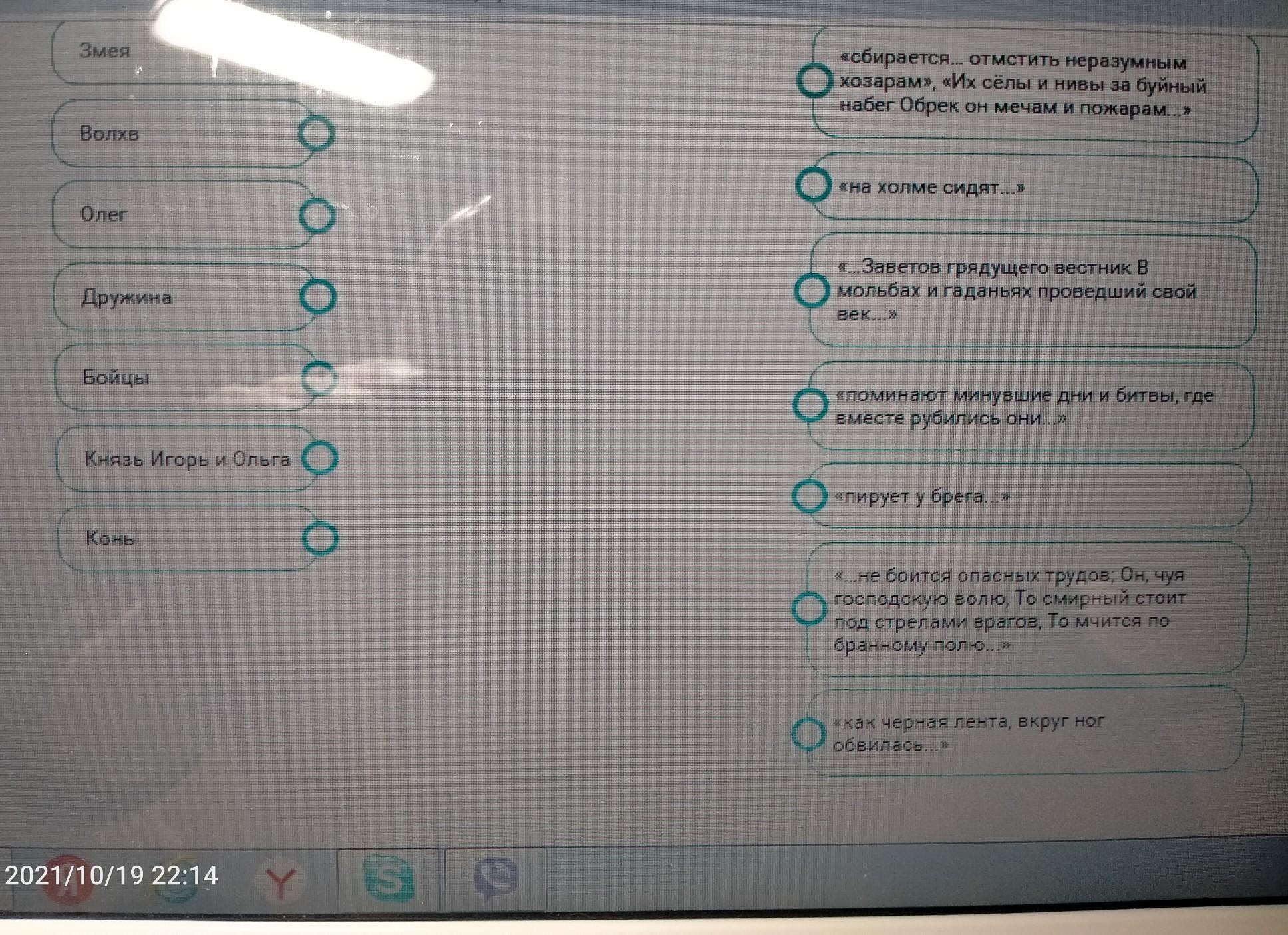 установите соответствие между персонажами песни о вещем олеге и их описаниями из текст баллады