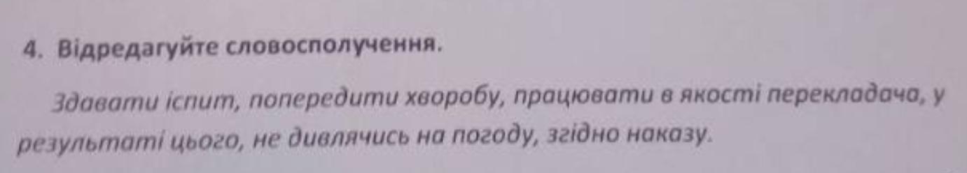 складати іспит , передбачити хворобу, працювати перекладачем, унаслідок цього , незважаючи на погоду , відовідно до наказу