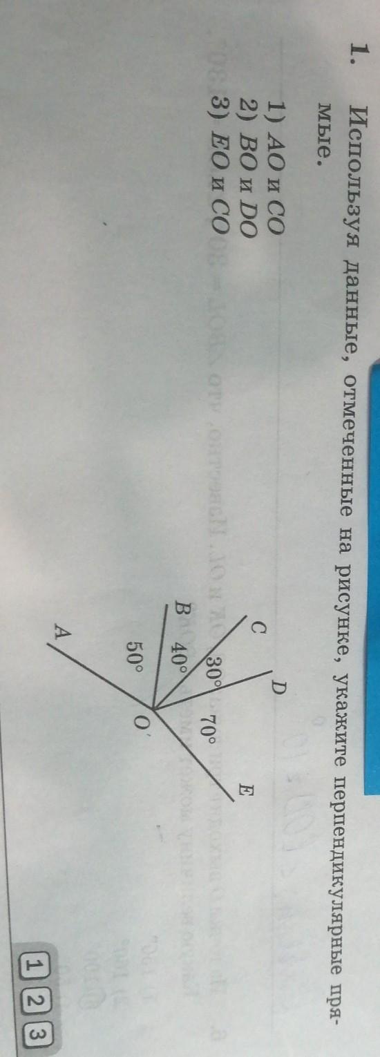 используй данные, отмеченные на рисунке, укажите перпендикулярные прямые. 1)AO и CO. 2)BO и DO. 3)