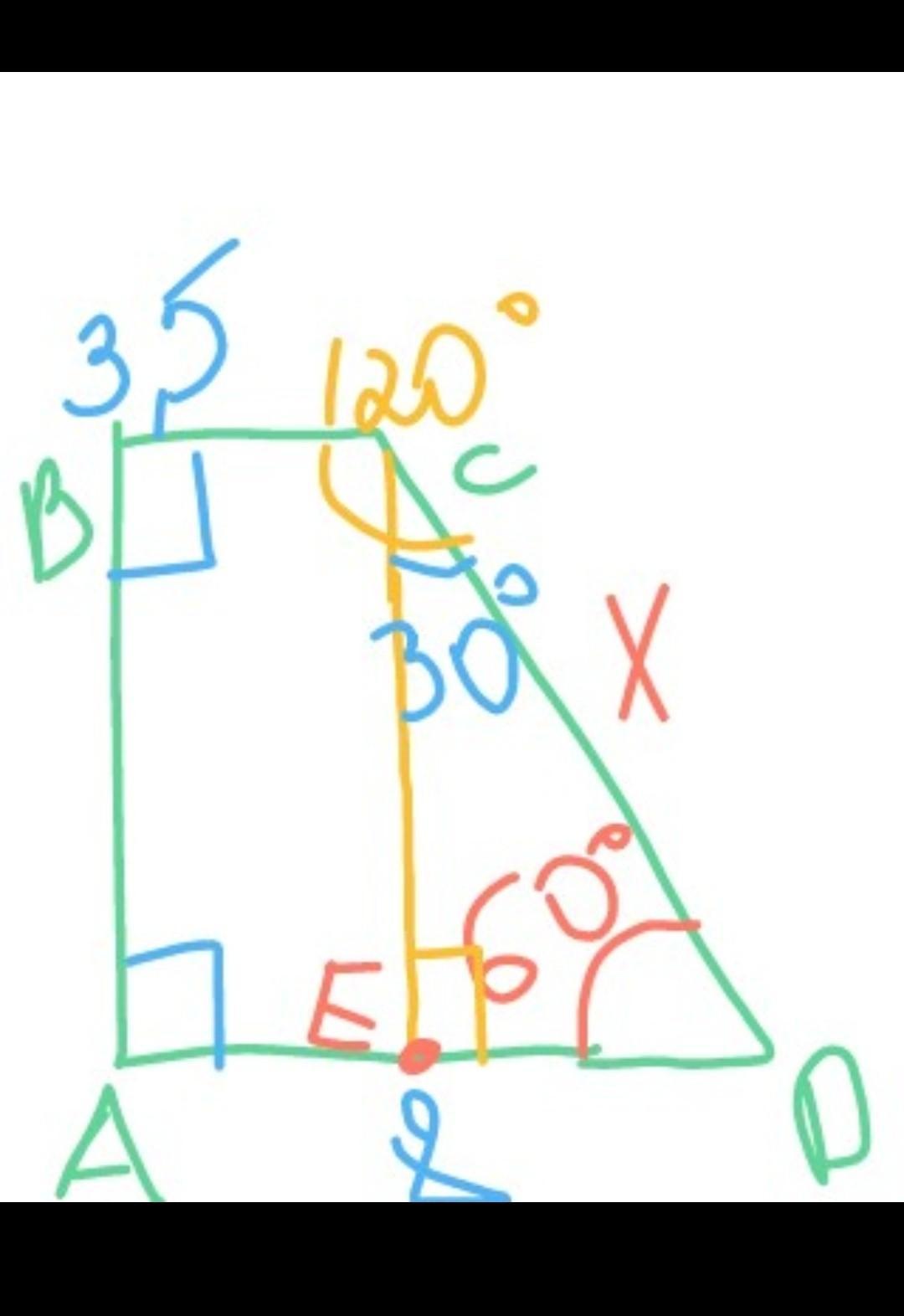 Проведем перпендикуляр из угла С до основания большого (и еа большом основании отметим точку например Е)