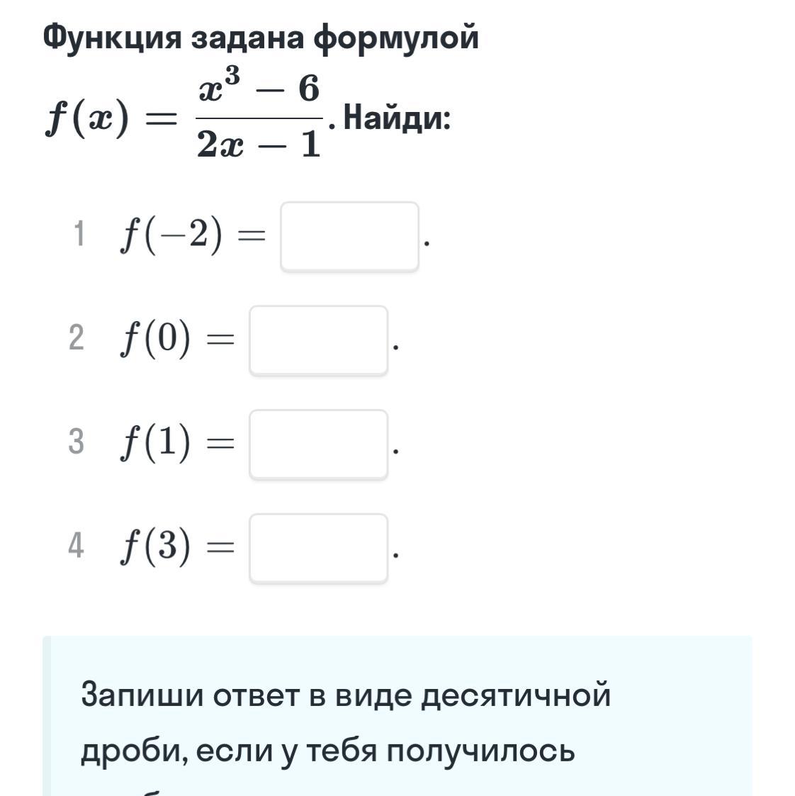 тут треба підставити замість х число : f(-2) = -2 у кубі-6/2×(-2)-1= -8-6/5 =-14/5=2, 8 Відповіть f(-2)= 2, 8. Але не впевнена!
