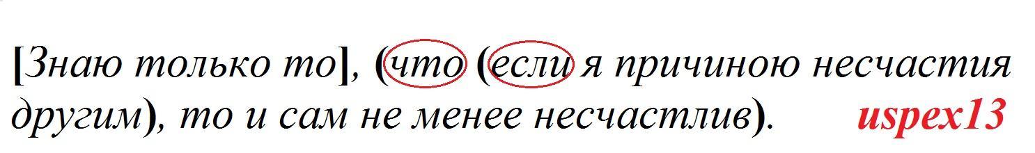 [ Знаю только то ], ( что если я причиною несчастия другим ), ( то и сам не менее несчастлив ).