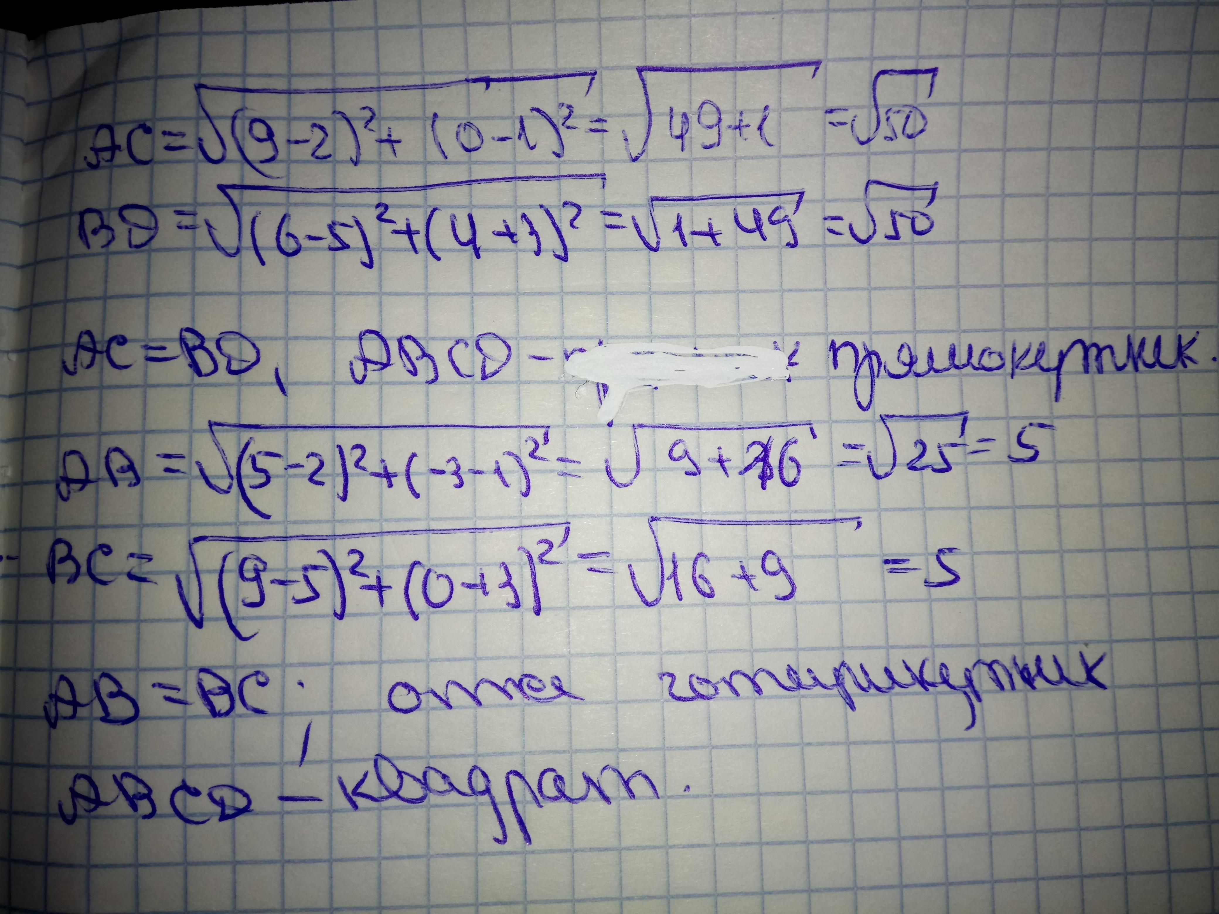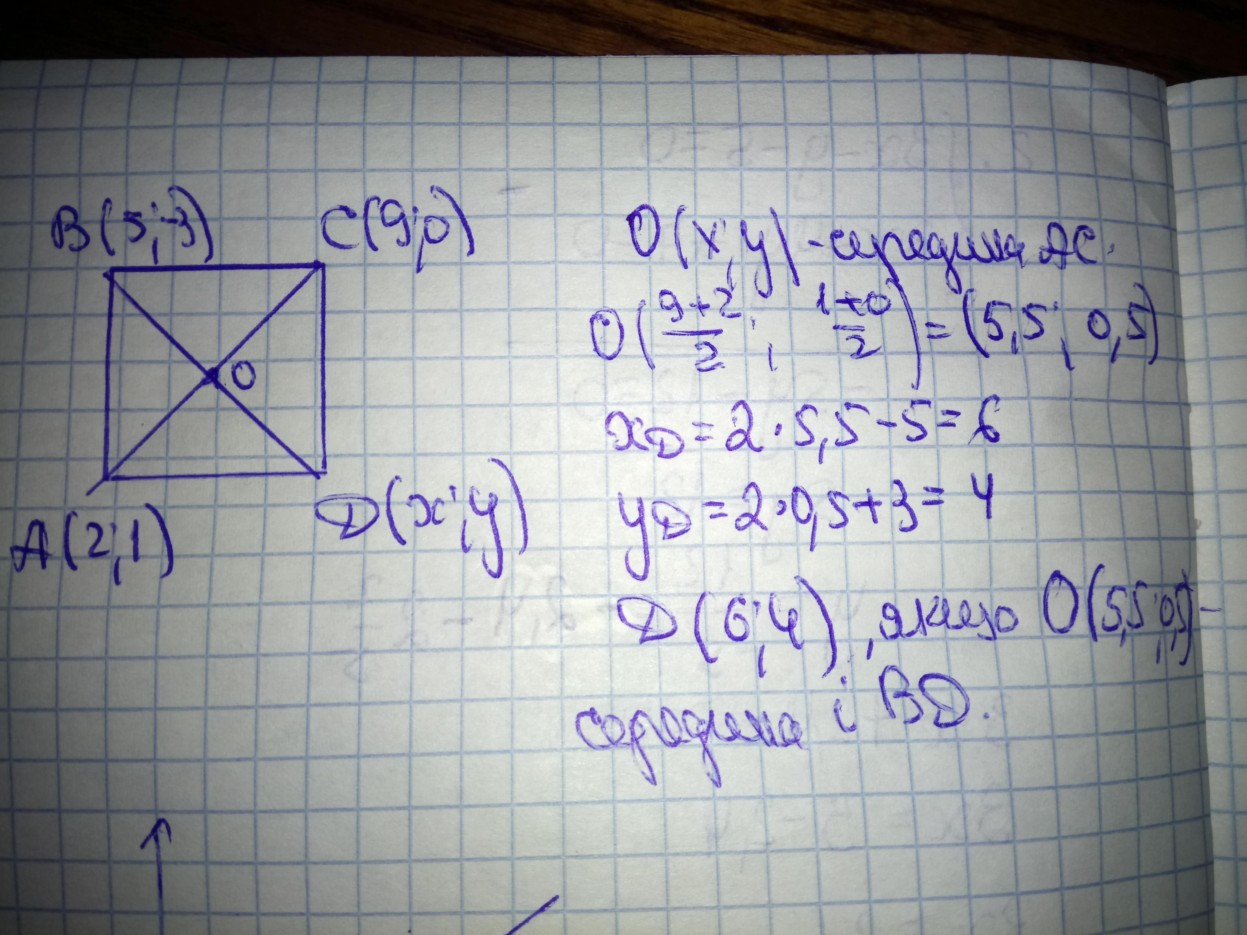 1. Знайдіть координати вершини D та доведіть, по чотирикутник АВСD з вершинами в точках А(2;1), B(S5;-3), C(9:0) є квадратом.