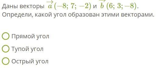 Даны векторы a→(−8;7;−2) и b→(6;3;−8).
