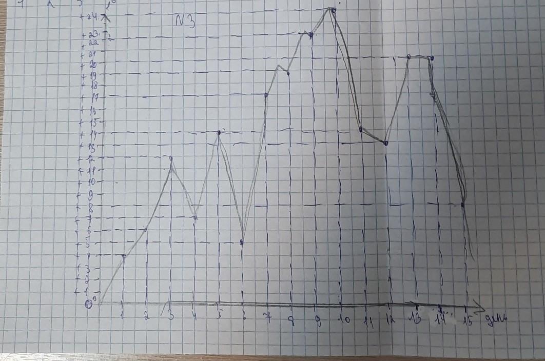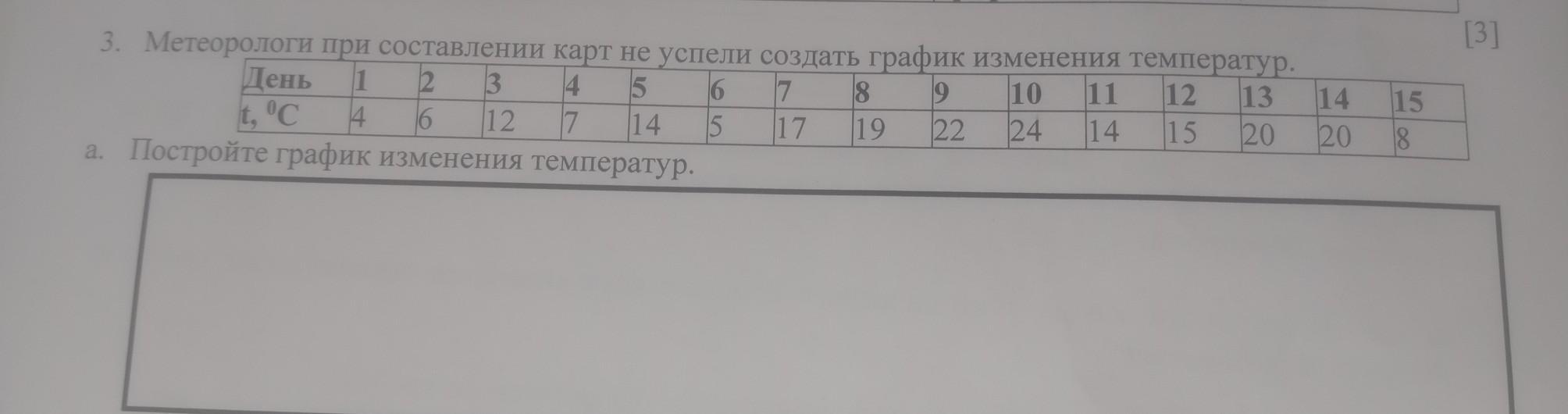 31 3. Метеорологи при составлении карт не успели создать график изменения температур. День 1 2 3 14 5 16 7 7 8 9 10 11 12 13 14 4 16 12 7 114 15 17 119 22 24 14 15 20 20 а. Постройте график изменения температур. 15. 18 t,