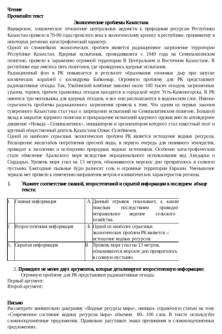 Одной из сложнейших экологических проблем является радиационное загрязнение территории Республики Казахстан. Ядерные испытания, проводившиеся с 1949 года на Семипалатинском полигоне, привели к заражению огромной территории В Центральном и Восточном Казахстане. В республике еще имелось пять полигонов, где проводились ядерные испытания.