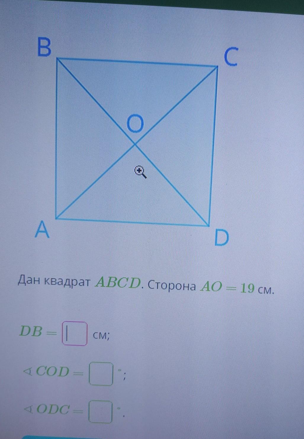 AO = 19 см, значит DB = OB + OD = 19 + 19 = 38 см