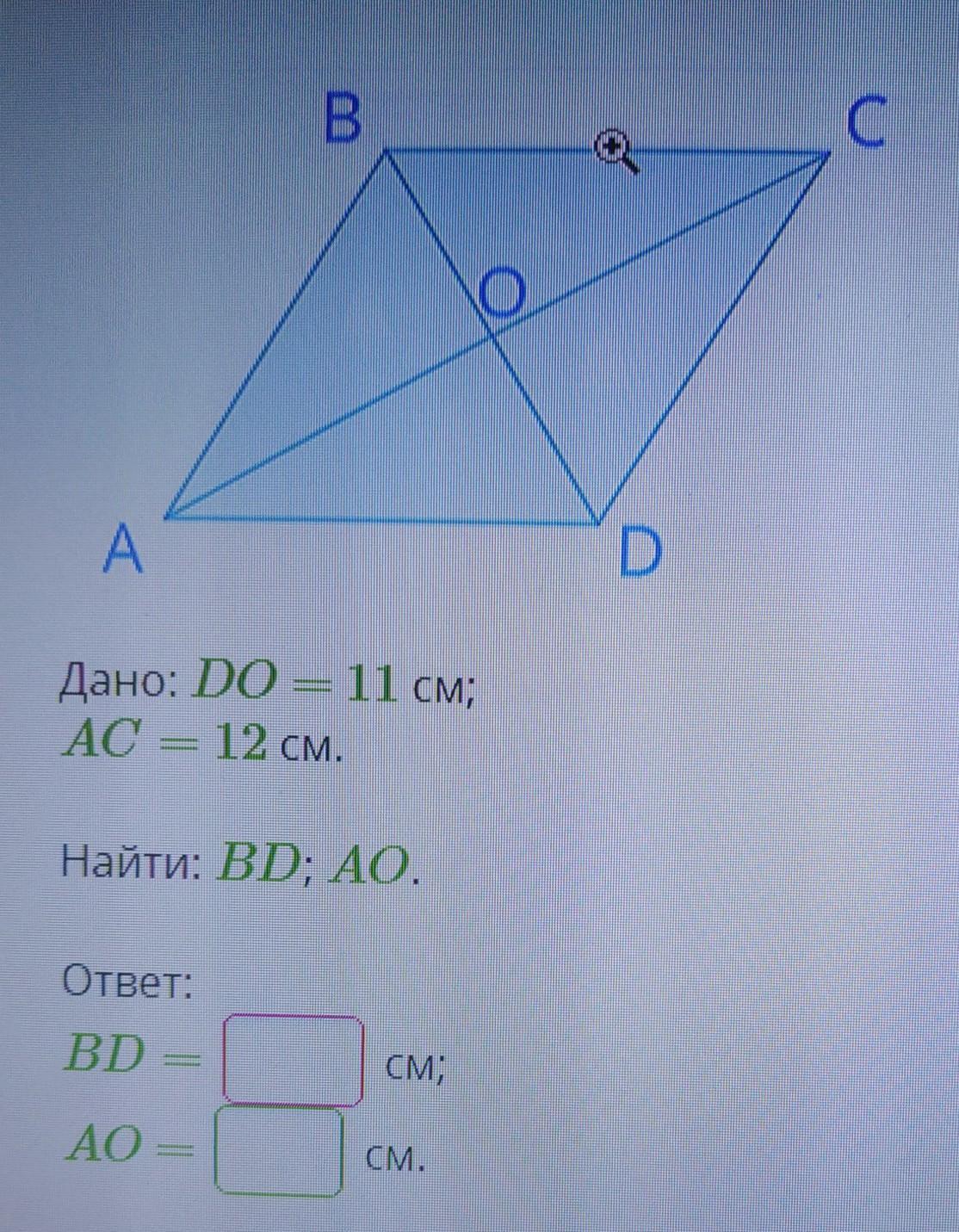 BD = BO + OD = DO + DO = 11 + 11 = 22 см