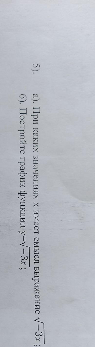 а). При каких значениях х имеет смысл выражение корень — 3x ; б). Постройте график функции y=корень -3x;