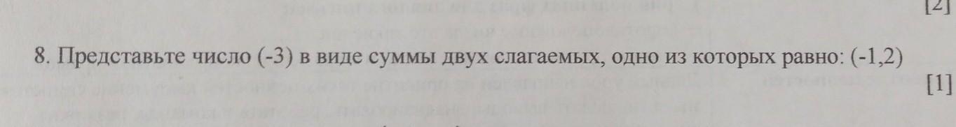 В задании: Представьте число (-3) в виде суммы двух слагаемых, одно из которых равно: (-12) написано не (-12), а (-1,2).