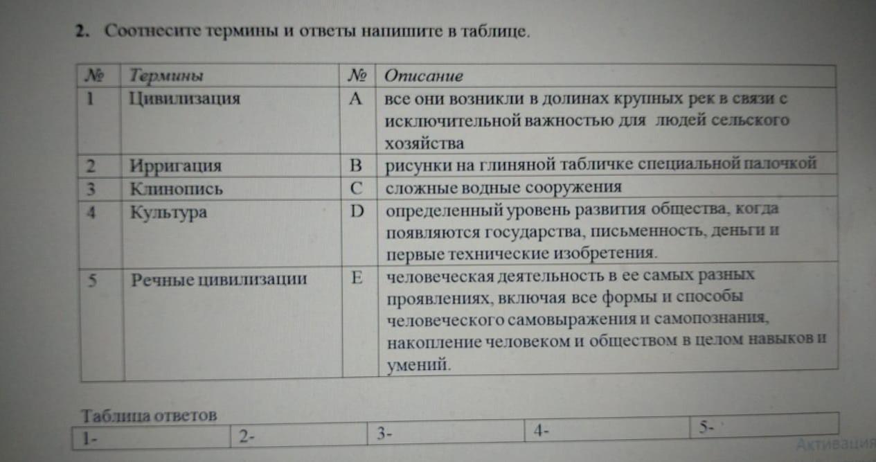 1. Цивилизация — D. определенный уровень развития общества, когда появляются государства, письменность, деньги и первые технические изобретения;