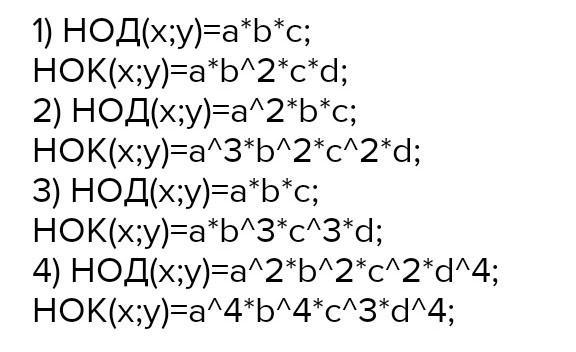 252. Найдите наибольший общий делитель и наименьшее общее кратное хи у, если: 1) х = abcd и у ) abcd и y = ab°С; 2) х = a*bed и у a*bec2; 3) х = abc и у abcd; 4) х = a*b'e'd и y = a*b-c'd“.