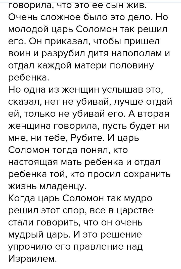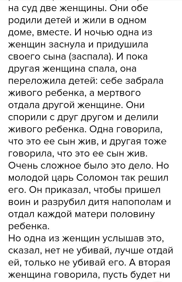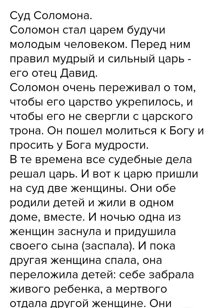 передайте кратко основное содержание главную информацию суда соломона опираясь на составленый план