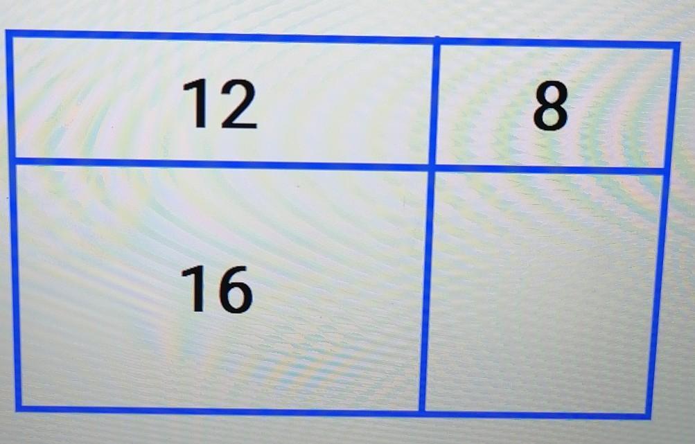 прямоугольник разделили двумя прямыми линиями на 4 прямоугольника периметрами 8,12,16 (прямоугольник периметром 12 по стороне соседствует с прямоугольниками 8 и 16) найдите периметр 4 прямоугольника