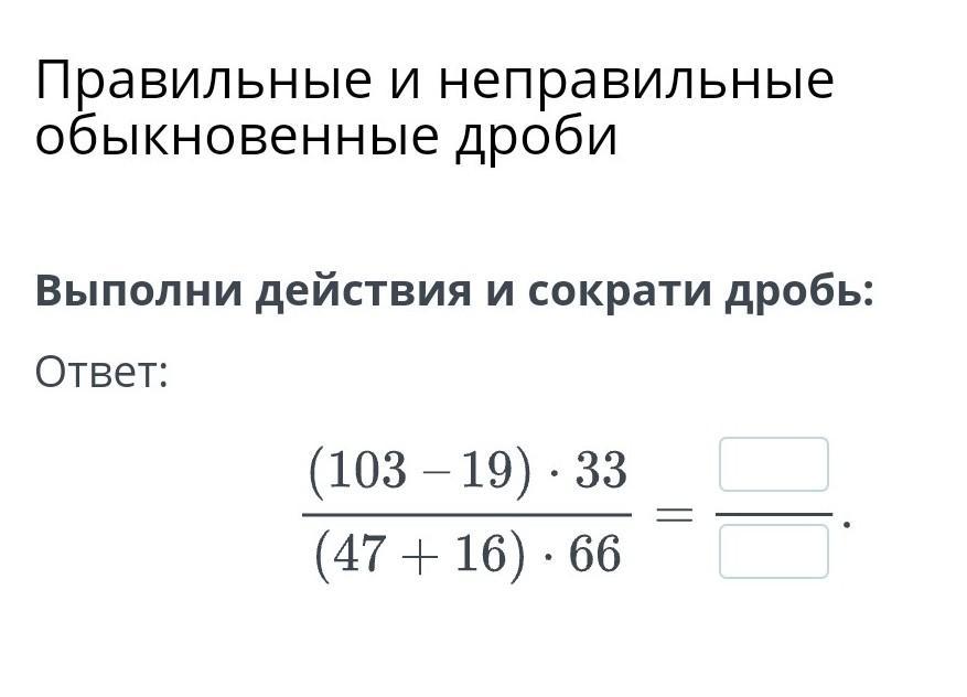 Правильные и неправильные обыкновенные дроби Выполни действия и сократи дробь: Ответ: