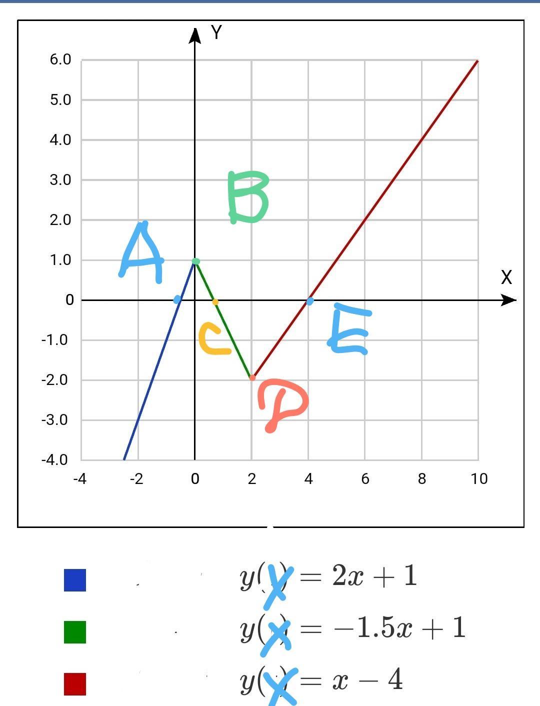 у(х)= -1.5х+1 ( зелёная часть)