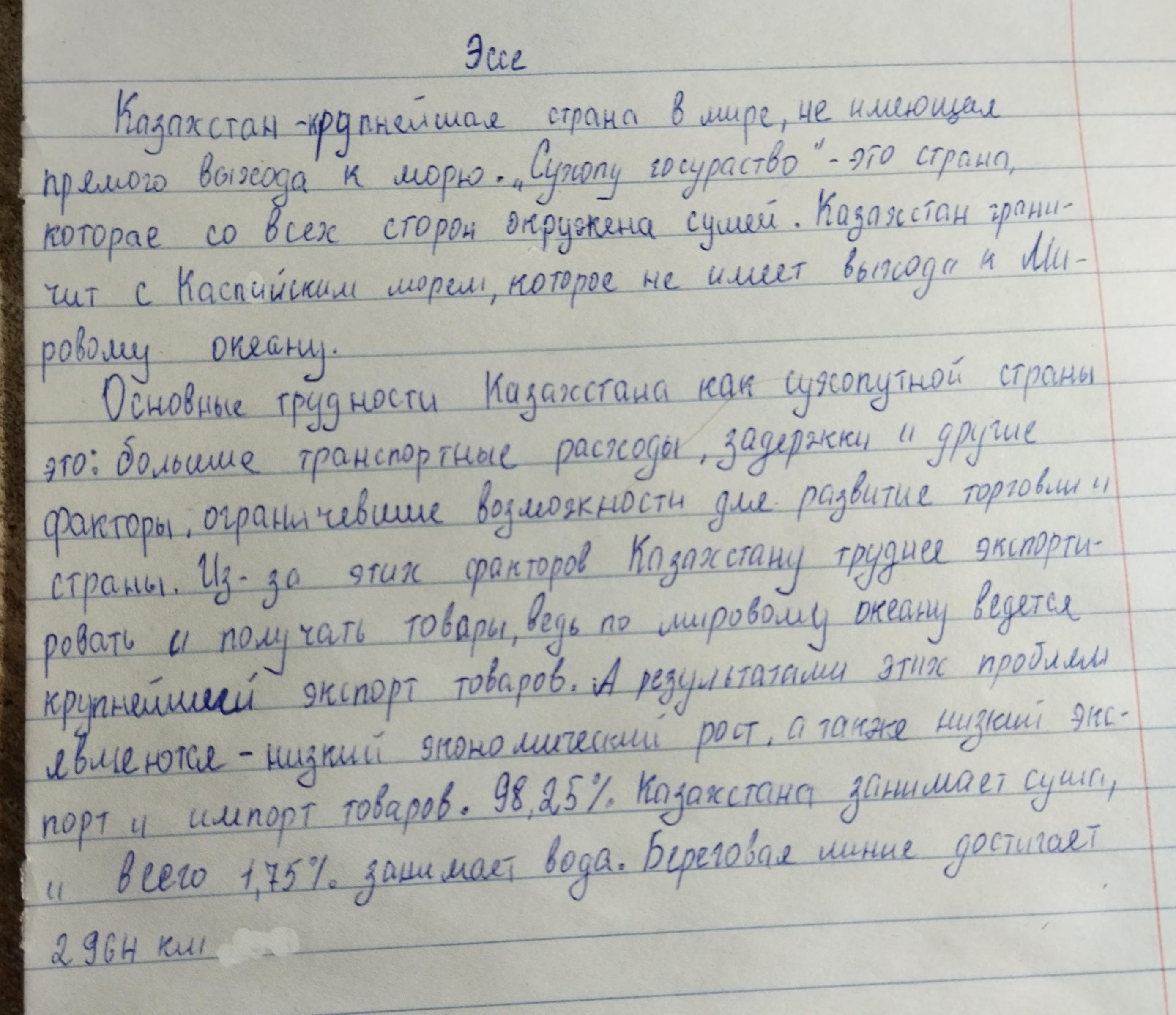 Прочитайте текст. Напишите его выборочное изложение на тему «Казахстан – крупное сухопутное государство». Приведите в тексте известные вам факты и примеры по данной теме из других источников. Соблюдайте логичность и последовательность изложения информации и используя сложные предложения разных типов (не менее 5). Пишите грамотно.