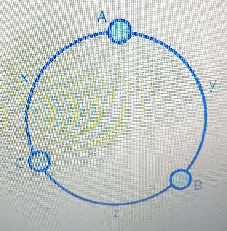 На кольцевой дороге три города: A, B и C. Известно, что путь из А в С в 2 раза длиннее по дуге, не содержащей B, чем через В. Путь из Bв С 2 в 3 раза короче по дуге, не содержащей А, чем через A. Во сколько раз путь из А в B по дуге, не содержащей С, короче пути через С?