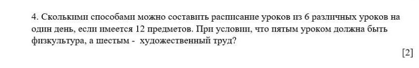 12 придметов из них 2 обезательно должны стаять на 5 и 6 из этого у нас получается десять предметов значит 10 вариантов расписания