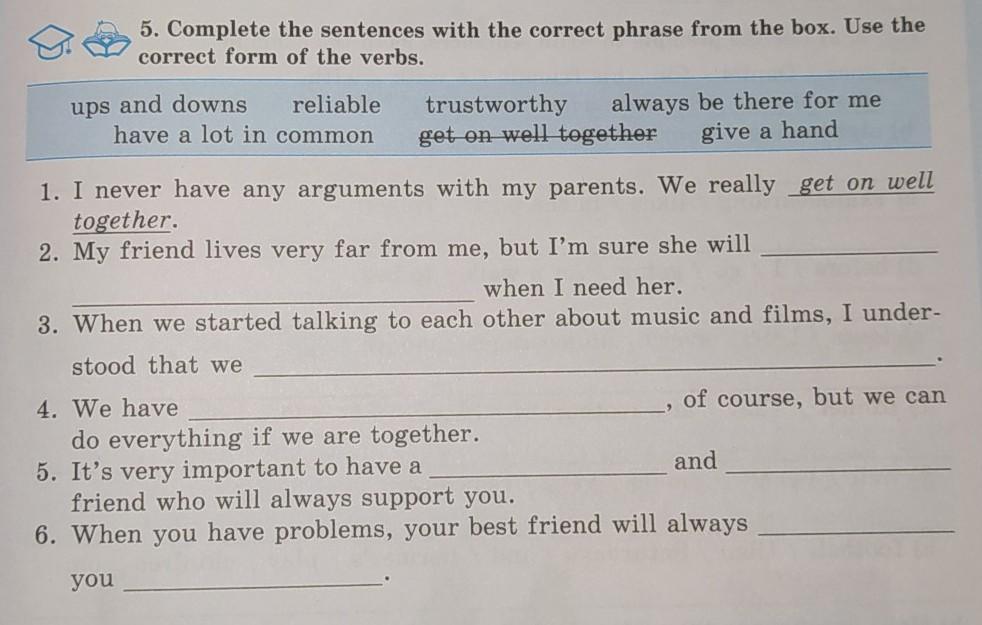 Complete the sentences with the correct phrase from the box. Use the correct form of the verbs.