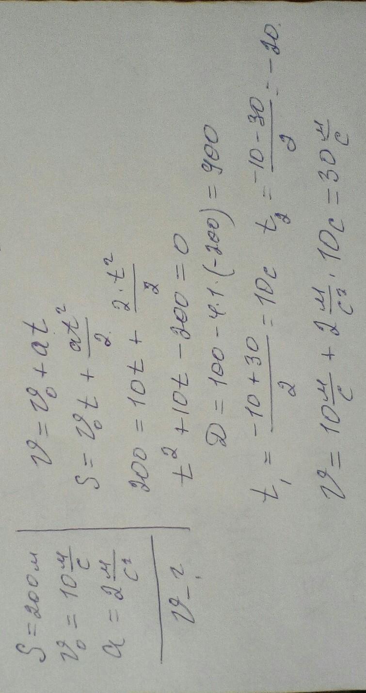 5 Какую скорость наберет тело на пути 200м, двигаясь с начальной скоростью 10 м/с и ускорением 2 м/с?