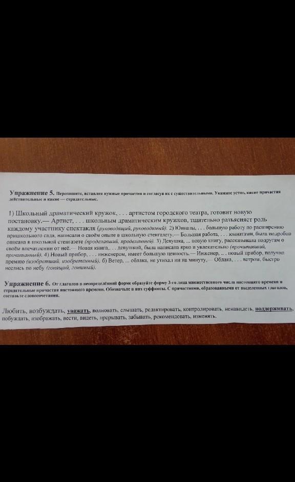 В упр.5 только вставить причастия. В упр.6 только образовать их. Остальное мы ещё не учили.