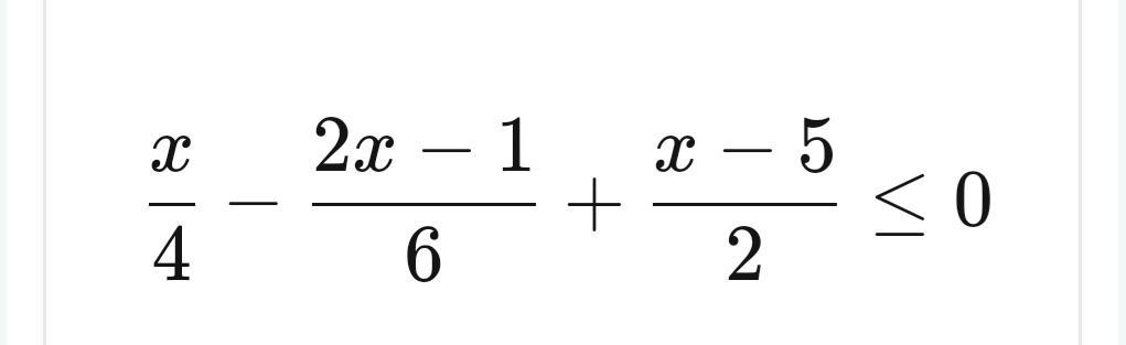 x/4 –(2x-1)/6 + (x-5)/2 ≤ 0 || *12