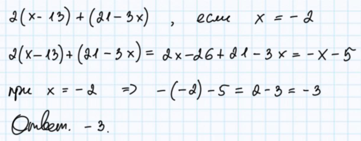 2 (х - 13) + (21 - Зx)=2x-26+21-3x=-x-5