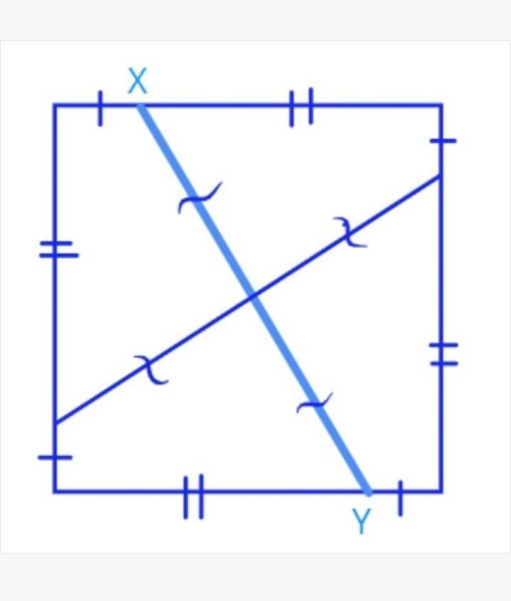 Квадратный торт периметром 100 см поделили двумя прямолинейными разрезами на четыре одинаковых кусочка, каждый периметром 56 см. На картинке изображен торт, разрезы и отмечены равные отрезки. Чему равна длина разреза XY? Ответ выразите в сантиметрах.