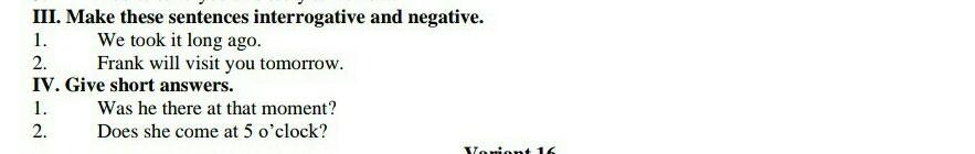 Will Frank visit you tomorrow? Frank won't visit you tomorrow.