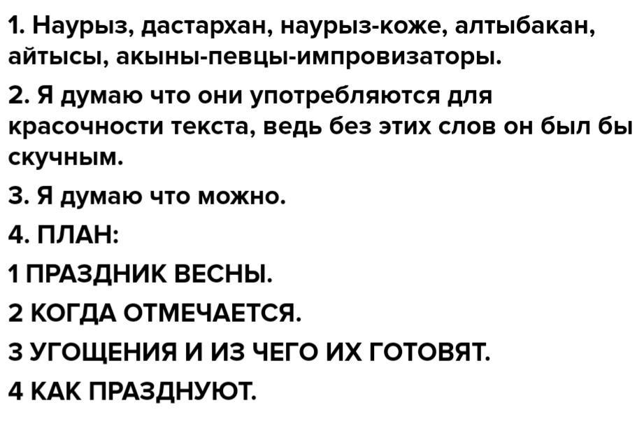 Прочитайте текст назовите заимствованные слова из казахского языка почему они употребляются в этом тексте? Можно ли эти слова перевести на другие языки? Составте сложный план