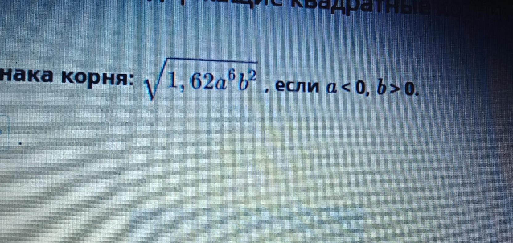 Преобразования выражений, содержащие квадратные корни. Ур Вынеси множители из-под знака корня: 1,62a62 , если а0. Ответ: