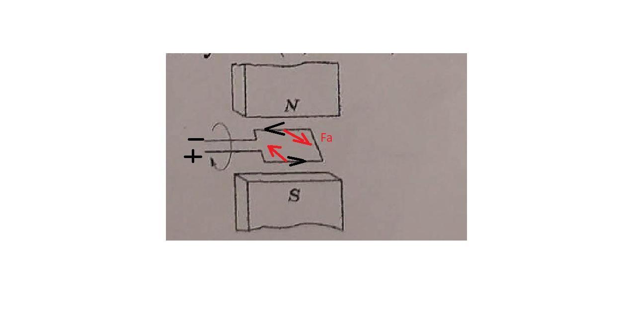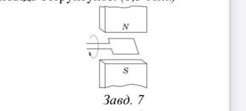 На рисунку зображена рамка, яка повертається в магнітному полі постійного магніту. Укажіть на рисунку напрямок струму в провіднику. Відповідь обґрунтуйте.
