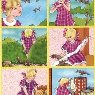 Девочка гуляла в парке. Она любовалась полетом птиц над верхушками деревьев. Вдруг птицы начали падать за кусты. Девочка подбежала, раздвинула ветви и увидела черную птицу. У птицы была глубокая кровавая рана на крыле. Птица очень жалобно посмотрела на девочку, пришлось забрать ее домой. Девочка обработала рану антисептиком и забинтовала крыло птице. Примерно через две недели птица выздоровела и улетела на волю.