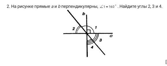 2. На рисунке прямые a и b перпендикулярны, . Найдите углы 2, 3 и 4.