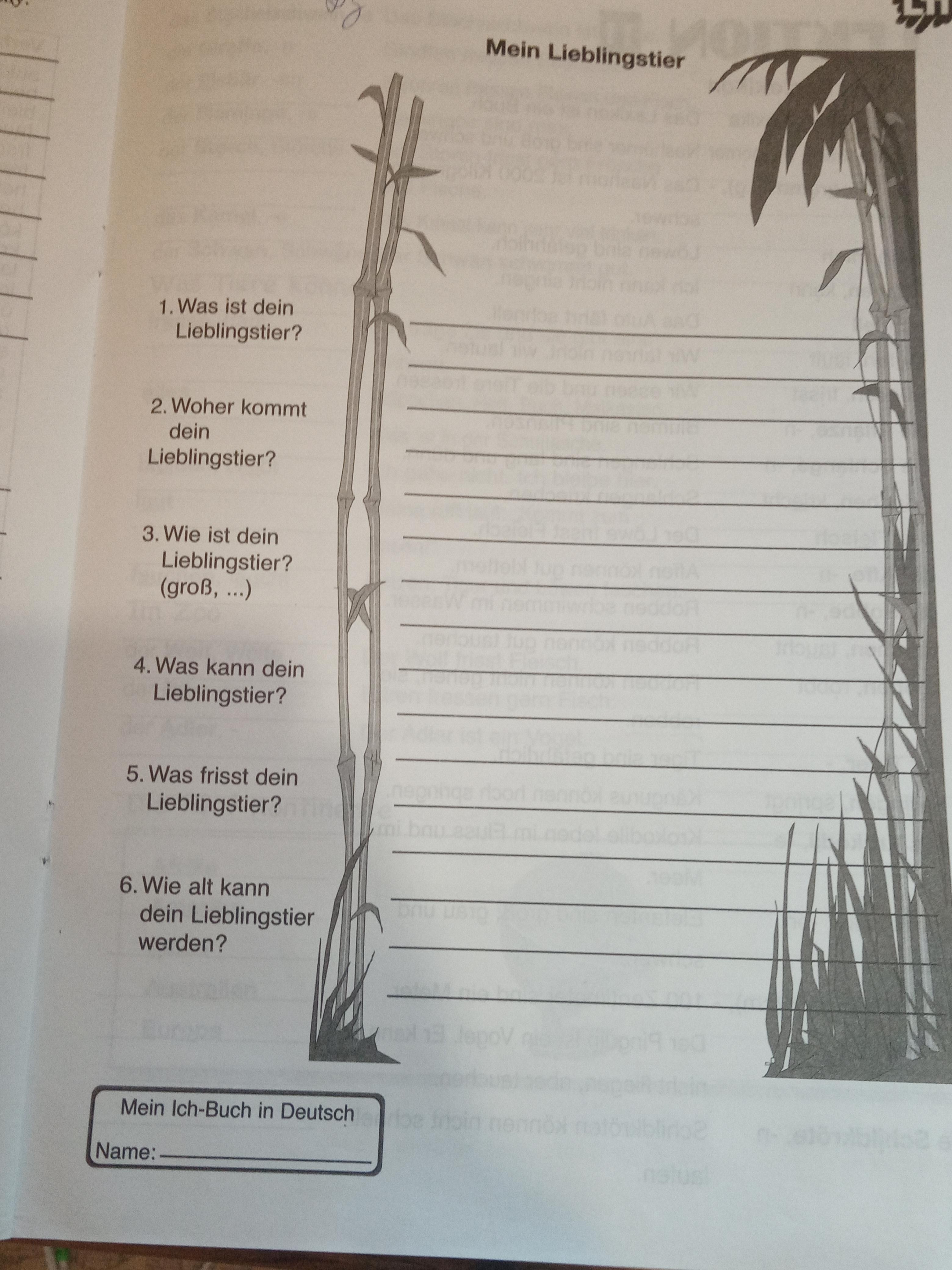 1. Mein Lieblingstier ist die Katze.