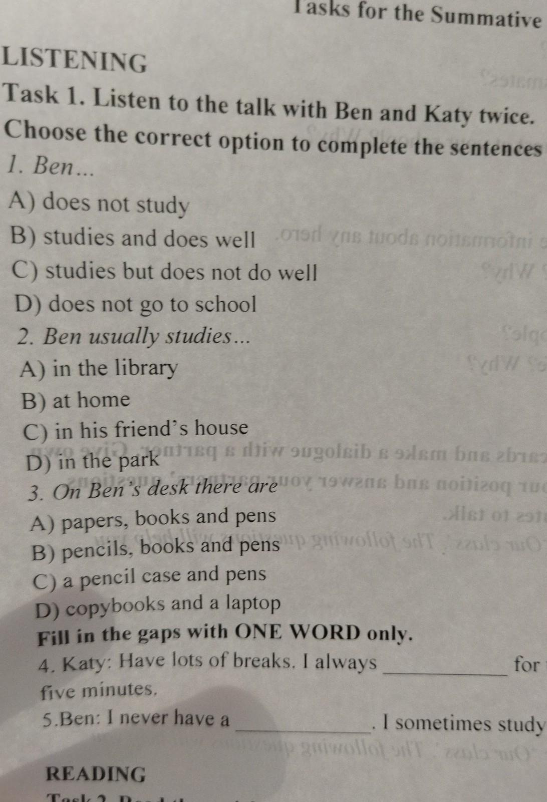 Task 1. Listen to the talk with Ben and Katy twice. Choose the correct option to complete the sentences
