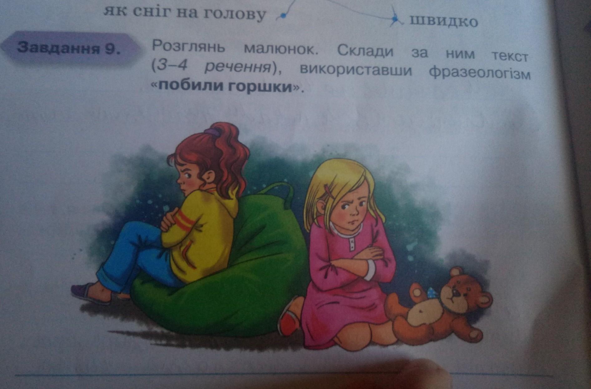 Розглянь малюнок. Склади за ним текст 3-4 речення використавши фразеологізм побили горошки