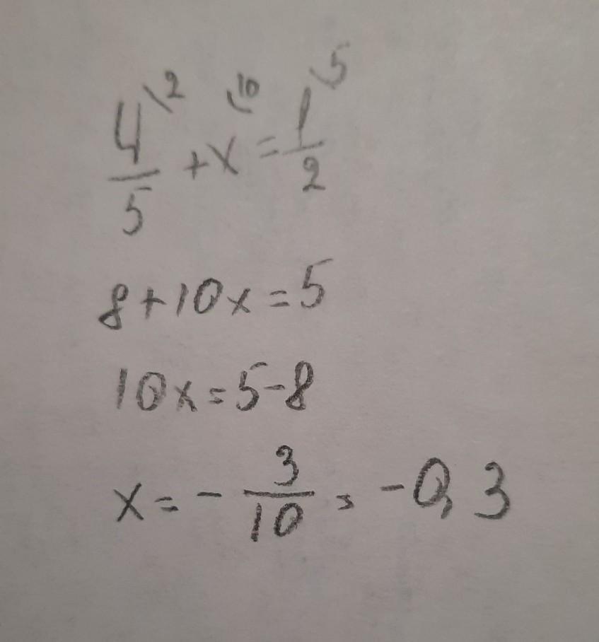 2)домножаешь дроби на 2 и 5(соответственно ), получаешь десятичные дроби 0.8 и 0.5, решаешь уравнение 0.8+х=0.5