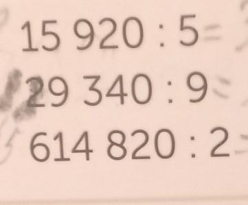Ответ:15:5=3, 9:5=1, 42:5=8, 20:5=4ответ3184;29340:9, 29:9=3, 23:9=2, 54:9=6, 0:9=0,ответ3260;614820:2, 6:2=3, 1:9=0, 14:2=7, 8:2=4, 2:2=1, 0:2=0, ответ 307410