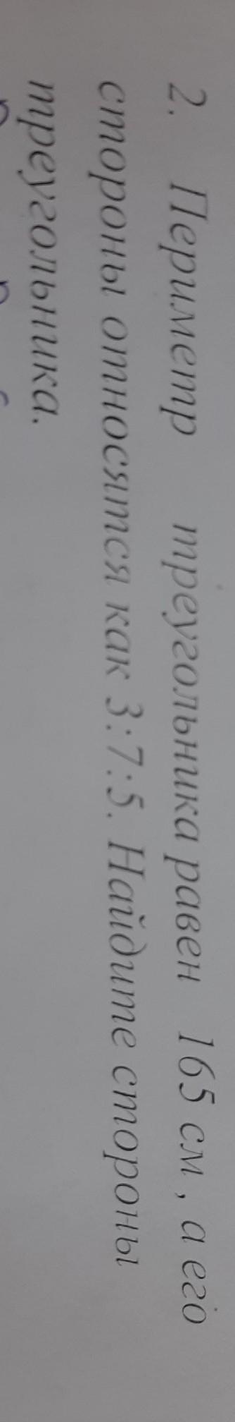 Дано:Pтреугольника=165см, AB:BC:AC=3:7:5;