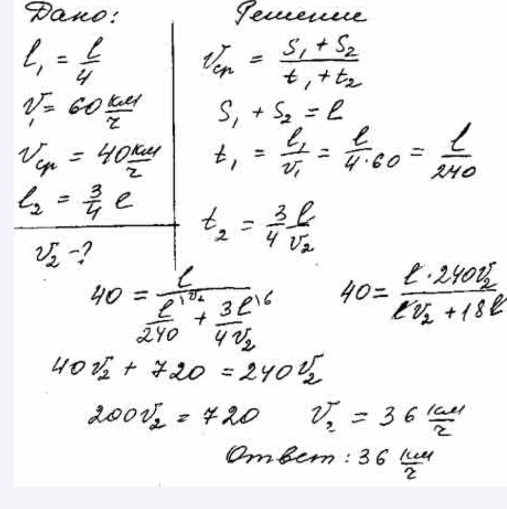с.10. первую четверть своего пути поезд прошел со скоростью 60 км/ч. Его средняя скорость на всем пути составила 40 км/ч определите скорость поезда на оставшейся части пути