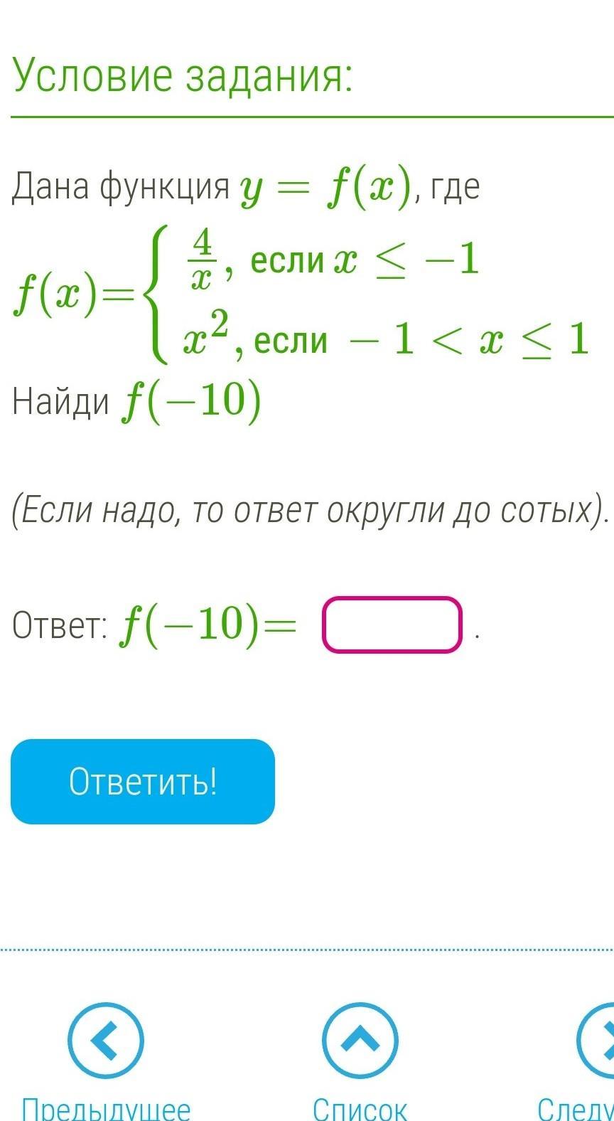 Дана функция y=f(x), где f(x)={4x,еслиx≤−1x2,если−1<x≤1