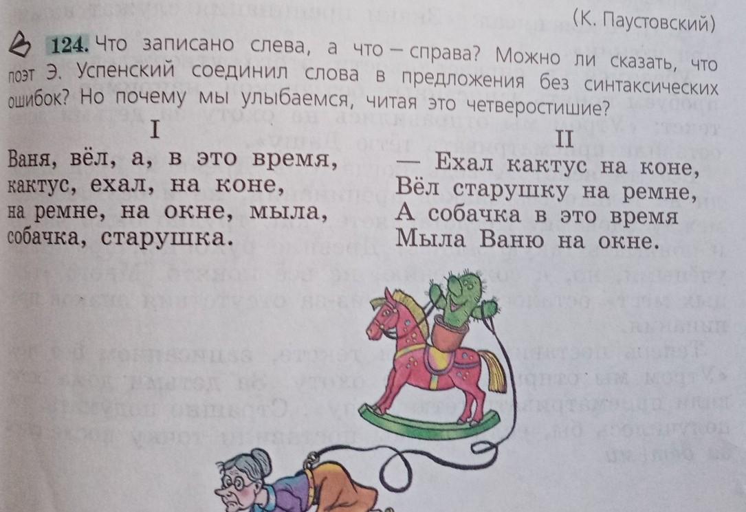 Ответ: Слева набор слов а справа стихотворение. Да мы можем сказать. Мы улыбаемся потому что произведение весёлое и шуточное.