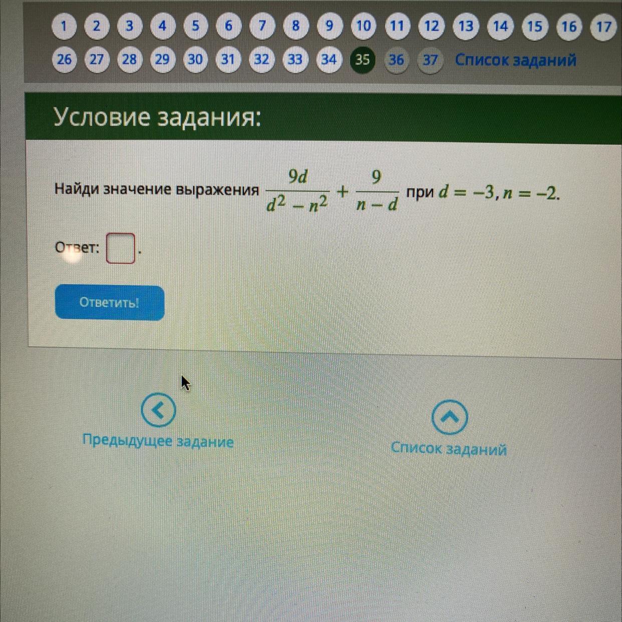 9d/(d-n)(d+n) + 9/n-d