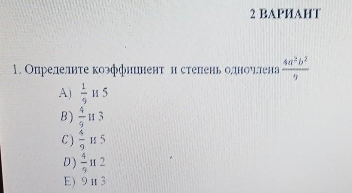 1.Определите коэффициент и степень одночлена 4a³b²/9