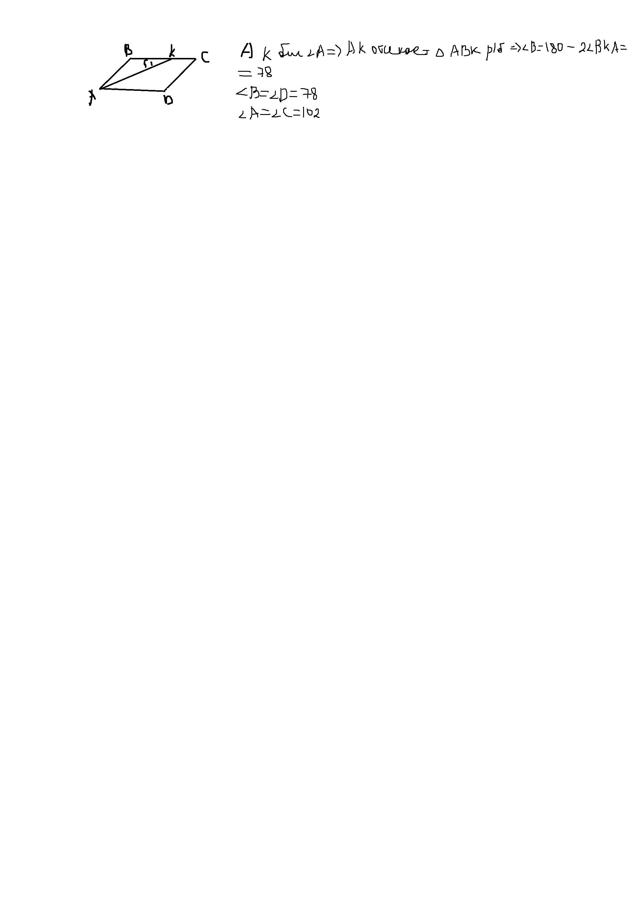 Вычислите углы параллелограмма если биссектриса одного из углов перескаясь с его стороной, образует с ней угол равный 51⁰