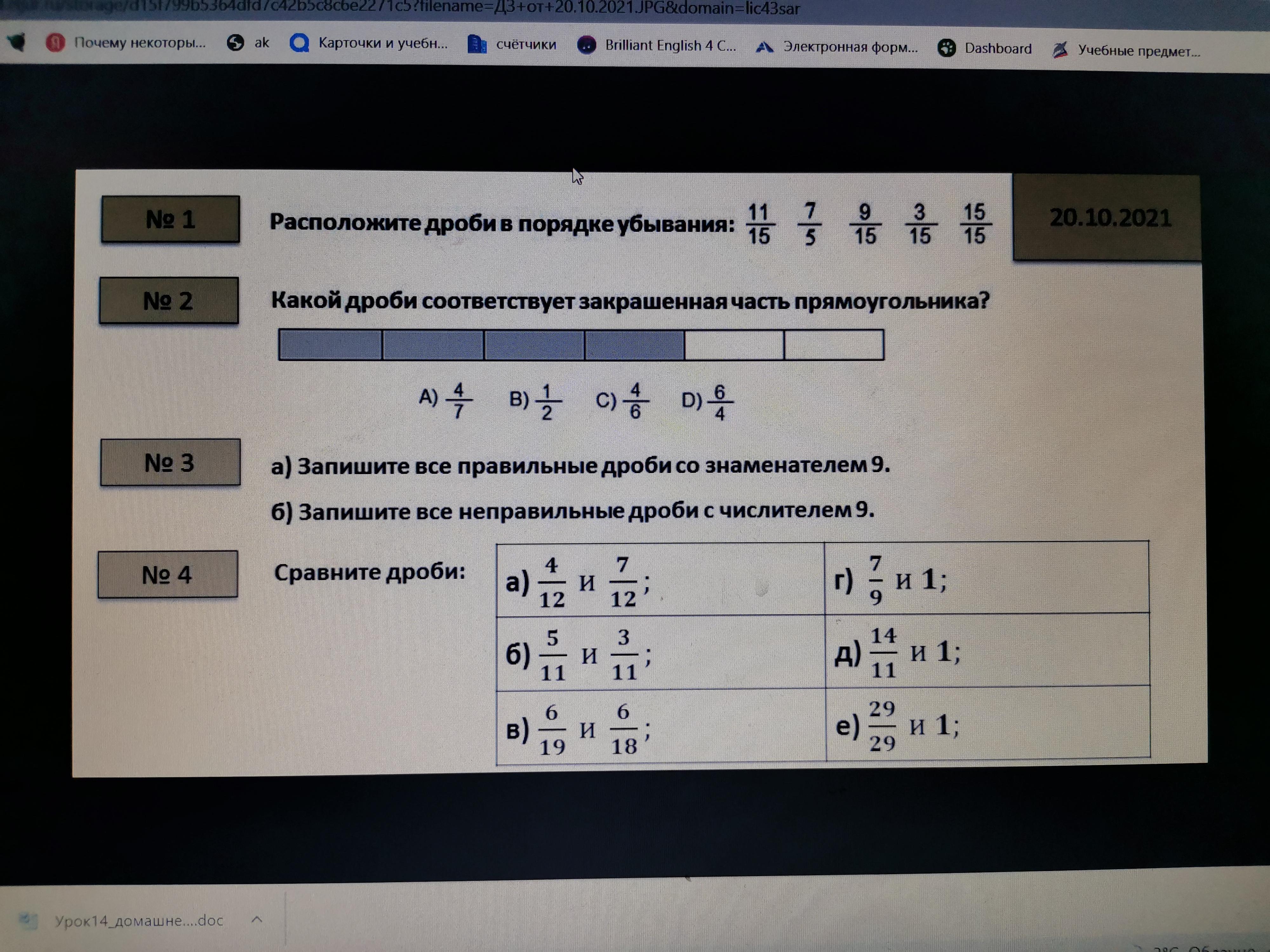 Помогите! Какой дроби соответствует закрашенная часть прямоугольника?