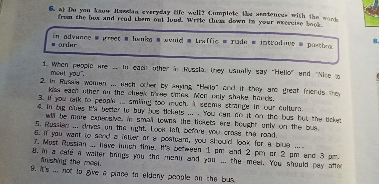 1. When people are introduce(d) to each other in Russia, they usually say "Hello" and "Nice to meet you".